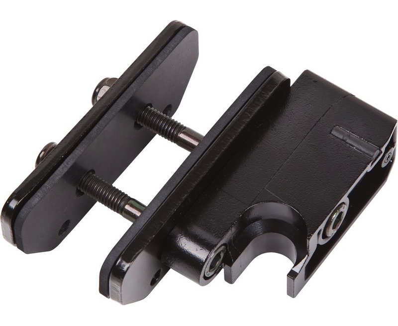 Plastic bracket with metal clamp for mounting and rubber inlays