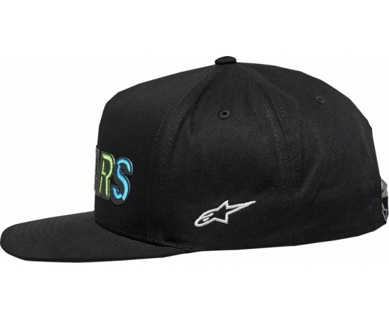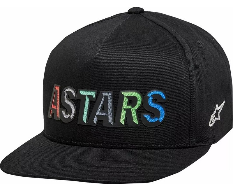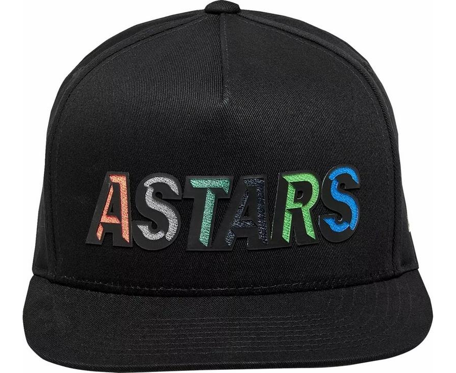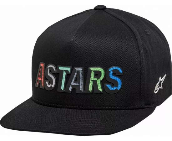 Flat bill cap with Astars embroidery and logo on side of hat with structured crown
