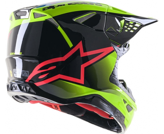 Lightweight outer shell is constructed from technologically advanced composite materials Fitted with E-2, the latest generation of MIPS®, an integrated low-friction layer designed to reduce rotational motion transferred to the brain from angled impacts to the head Multiple-density inner helmet liner Visor is attached to helmet shell with system that allows easy release in case of an impact Alpinestars A-Head adjustable-height top interior helmet pad height Superior ventilation system utilizes 19 intake and 5 exhaust ports Helmet side shell shape combined with soft EPP foam prevents damage to collar bone in event of crash Emergency release and removable cheek pads 3D contoured foam Removable comfort liner uses anti-moisture and antibacterial fabrics Hydration system prepared E-Ject prepared