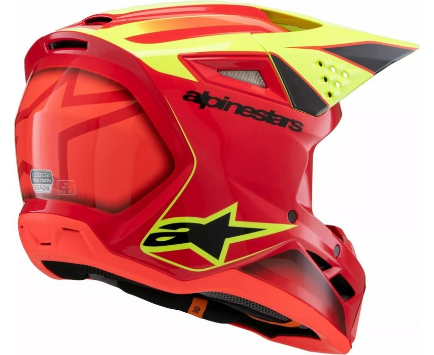Alpinestars has introduced a new in-house standard for the SM3 Youth to test the helmet’s chin to conditions heavier than the homologation standard, and in order to pass the Alpinestars’ new standards, the shell thickness and the structure of the helmet design itself have both been optimized on the chin area for superior impact performance.