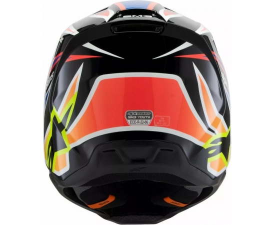 Alpinestars has introduced a new in-house standard for the SM3 Youth to test the helmet’s chin to conditions heavier than the homologation standard, and in order to pass the Alpinestars’ new standards, the shell thickness and the structure of the helmet design itself have both been optimized on the chin area for superior impact performance.