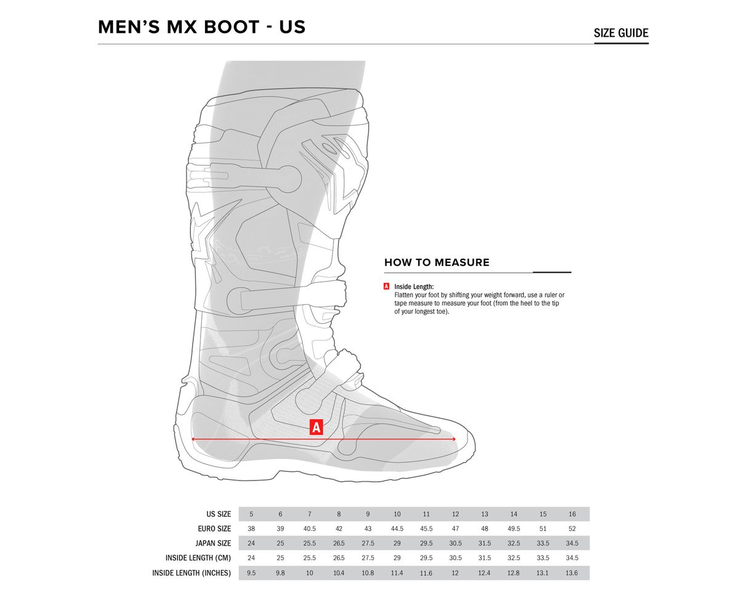 Completely redesigned sole with proprietary grip sculpturing to improve foot-peg performance, grip and mud and water run-off