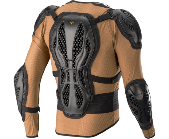 Back protector features three articulated plates to allow for greater flexibility and adaptive back fit in all riding positions