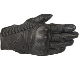 Article Number: 3566118-1100-S Mustang V2 Gloves Full leather construction Perforation zones for improved breathability Glove side reinforcements are synthetic suede Padded, reinforced areas at impact landing zones Hard PVC knuckle guard covered with leather Stretch accordion inserts on fingers...