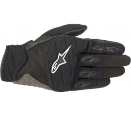 Article Number: 3566318-10-S Shore Gloves Multi-material, multi-panel main shell construction Alpinestars ergonomic stretch insert between on palm Leather palm and fingers for comfort and performance Synthetic suede reinforcements on side hand and fingers Stretch fabric, spandex and mesh for fit...