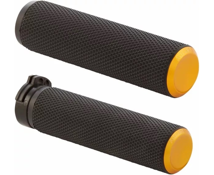 Diamond Knurled rubber design features diamond knurled grips with integrated billet end caps for a clean design