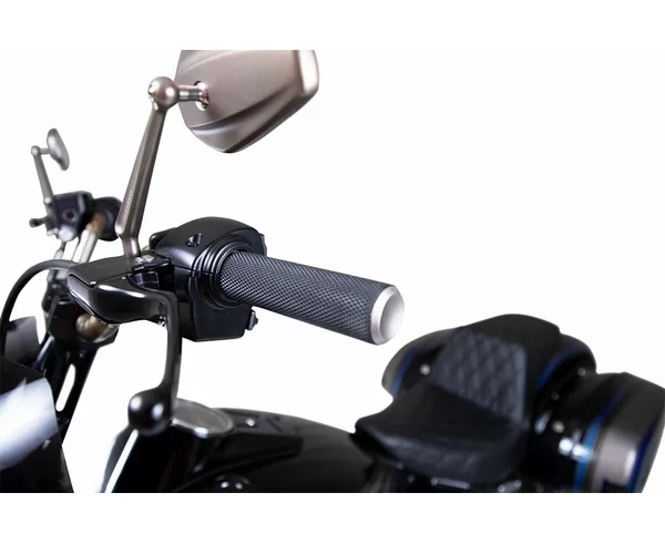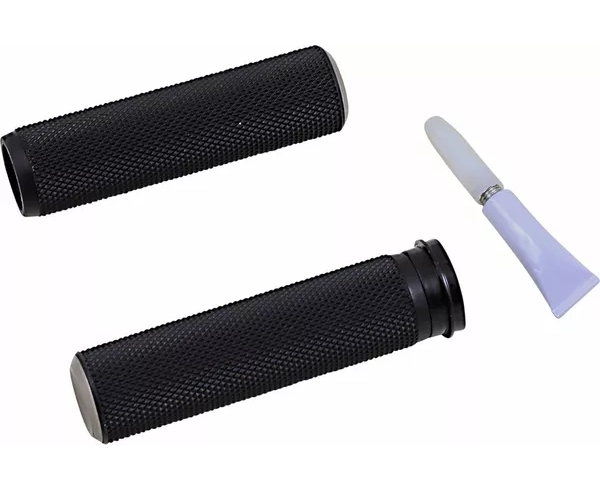 Diamond Knurled rubber design features diamond knurled grips with integrated billet end caps for a clean design