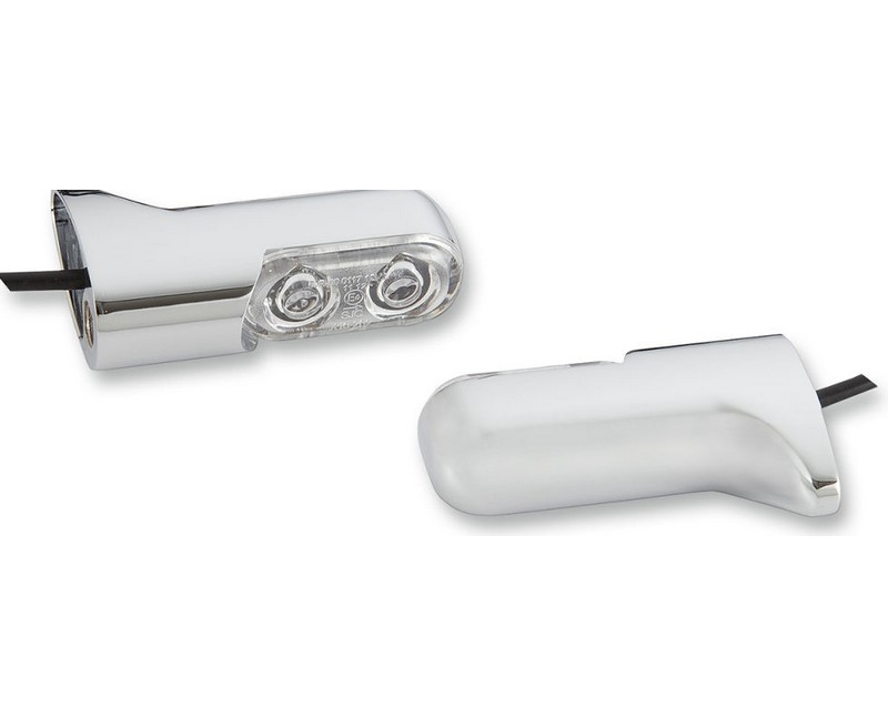 Bolt-On Turn Signals with Power LEDsCompact billet design flows nicely into rear fender struts or front signal mountsFeature Power LEDs, which give off as much light as 25-30 conventional LEDs12 volt, dual-function designRear lights measure approximately 2-1/2" L x .900" W with 8mm/5/16" x 1-3/4" mounting studsFront lights measure approximately 2.18" L x 1.3" W and are tapped 5/16"-18 mounting studsNot D.O.T. compliant.If being used as turn signals, a load equalizer may be required
