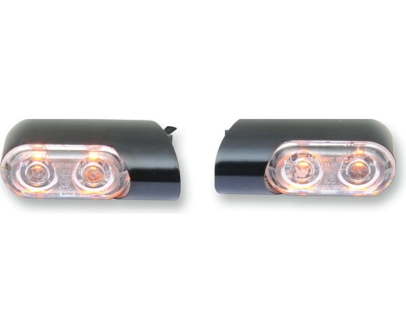Bolt-On Turn Signals with Power LEDsCompact billet design flows nicely into rear fender struts or front signal mountsFeature Power LEDs, which give off as much light as 25-30 conventional LEDs12 volt, dual-function designRear lights measure approximately 2-1/2" L x .900" W with 8mm/5/16" x 1-3/4" mounting studsFront lights measure approximately 2.18" L x 1.3" W and are tapped 5/16"-18 mounting studsNot D.O.T. compliant.If being used as turn signals, a load equalizer may be required