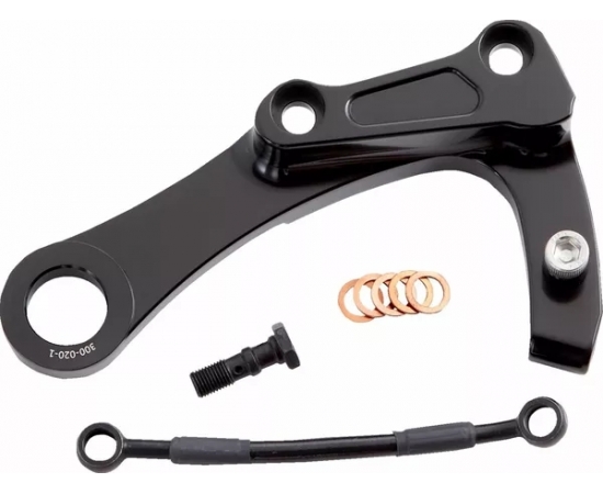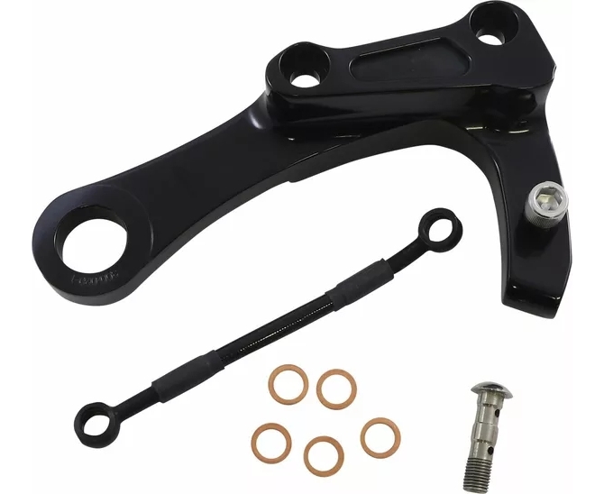 Each kit includes billet caliper bracket, jumper brake line, banjo bolt and necessary hardware