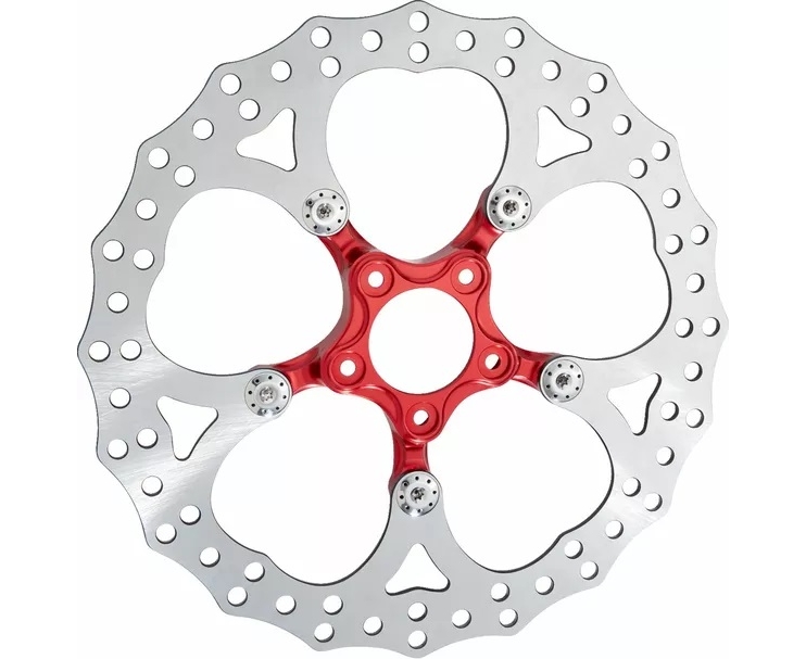 Spider performance brake rotors feature titanium floating rotor hardware, jagged brake discs & CNC machined lightweight billet carriers