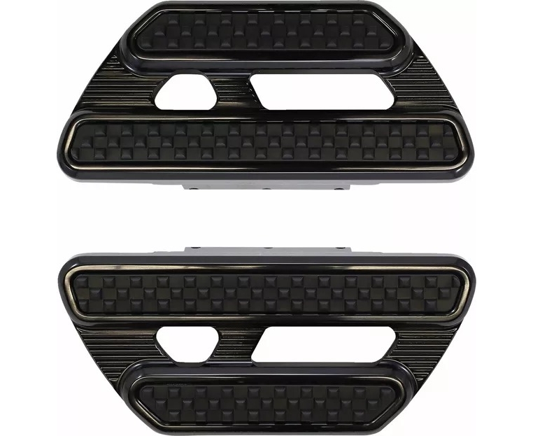 CNC machined billet floorboard bodies & proprietary vibration isolating rubber that enhances foot traction while providing comfort