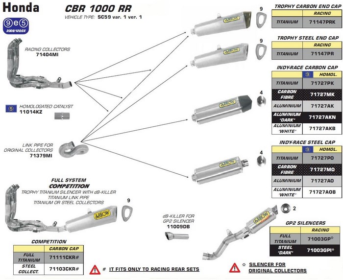 ARROW HONDA CBR 1000 RR '08/13 GP2 STEEL DARK SILENCER + LINK PIPE FOR ARROW COLLECTORS | 71003GPI