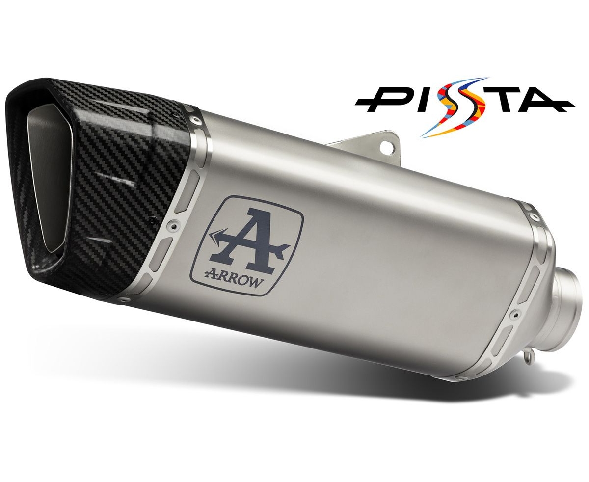 Pista, ist der neue Arrow Auspufftopf, entworfen, entwickelt und getestet direkt auf der Strecke. Die aggressive Form in Kombination mit edlen Materialien, der Schalldämpferkörper ist aus Titan, und eine sorgfältige Studie der Gasströme machen ihn zu einem "Top Level"-Produkt für Superbikes. Geboren für die Welt des Rennsports und den kompromisslosen Einsatz des Motorrads auf der Rennstrecke.