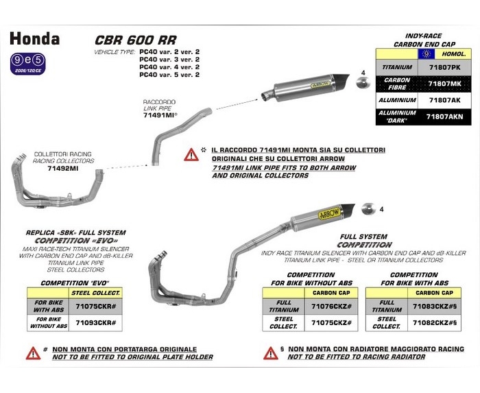 ARROW HONDA CBR 600 RR'13 HOMOLOGATED ALUMI- NIUM DARK INDY RACE SILENCER WITH CARBON END CAP FOR ORIGINAL AND ARROW COLLECTOR | 71807AKN