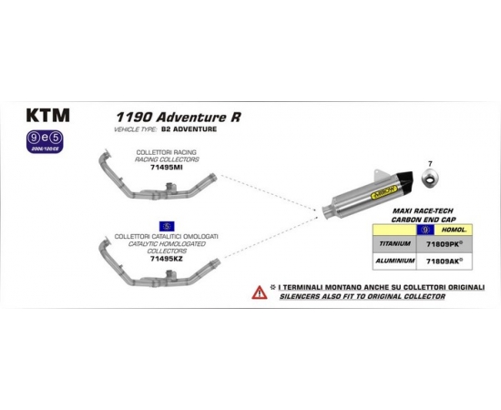ARROW KTM 1190 ADVENTURE R'13 HOMOLOGATED ALUMINIUM DARK MAXI RACE-TECH SILENCER WITH CARBON END CAP | 71809AKN