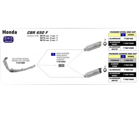 ARROW HONDA CBR 650 F '14/CB 650 '17 HOMOL. ALUMINIUM DARK THUNDER SILENCER WITH CARBON END CAP FOR ARROW COLLECTORS | 71821AKN
