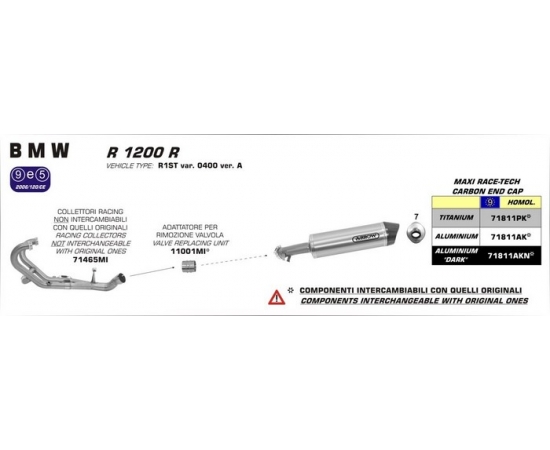 ARROW BMW S 1000 XR '15 HOMOLOGATED RACE-TECH ALUMINIUM DARK SILENCER WITH CARBON END CAP FOR ORIGINAL AND ARROW COLLECTORS | 71837AKN