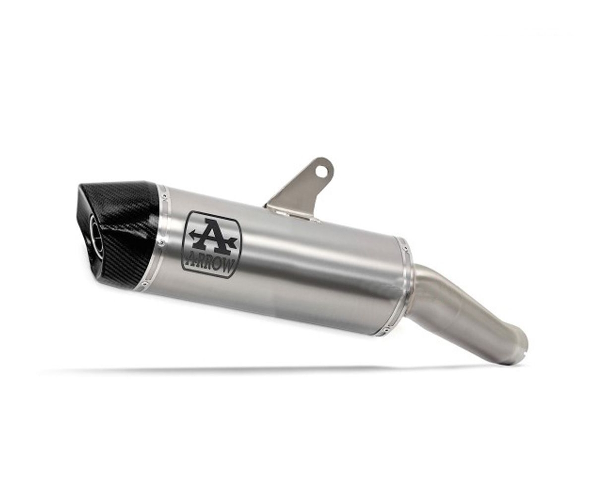 Indi-Race ist die Linie, die von Arrow für speziellere Anwendungen wie Untersattel entwickelt wurde, bei denen die Installation eines Standardauspuffs komplex ist. Ihre neue Form erinnert an die Kurven einiger Strecken der Indy-Formel-Meisterschaften, daher die Inspiration für den Namen dieser sehr exklusiven Linie. Die Quetschung und die Beibehaltung eines guten Innenvolumens im Auspuff reduzieren die Geräuschemissionen. Die internen Komponenten sind aus rostfreiem Stahl und werden mittels TIG- und MIG-Schweißen zusammengesetzt.