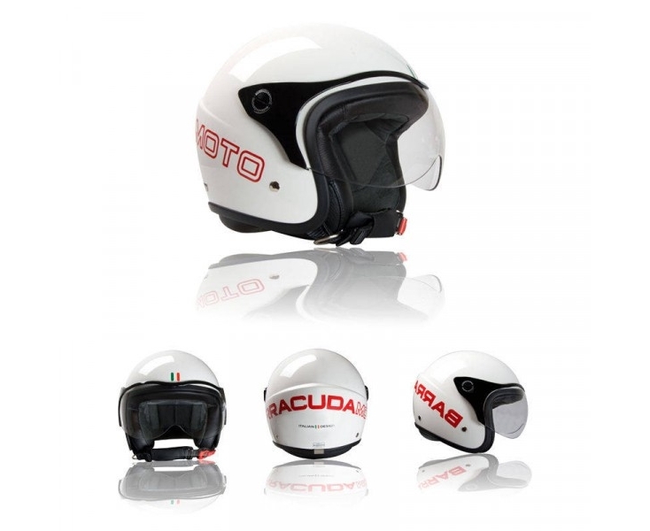 Neues Konzept des Helms mit der Neuen Marke BARRACUDAMOTO. Der Helm BARRACUDAMOTO Modell FIBRA. Es hat eine starke, persönlichen ed exklusives Entwurf. Es bietet Eine hohe livel von Einzelheiten, Wie der Inneren ANTI-Schweiß MIT Speichern .es in FIBERGLASS ist, exzellente Trage. Ist möglich, die getönte Visier in den Farben weiß Helm mit roter Aufschrift oder in schwarzem Helm mit silberner Aufschrift hinzuzufügen. Der Helm ist E-gepr.