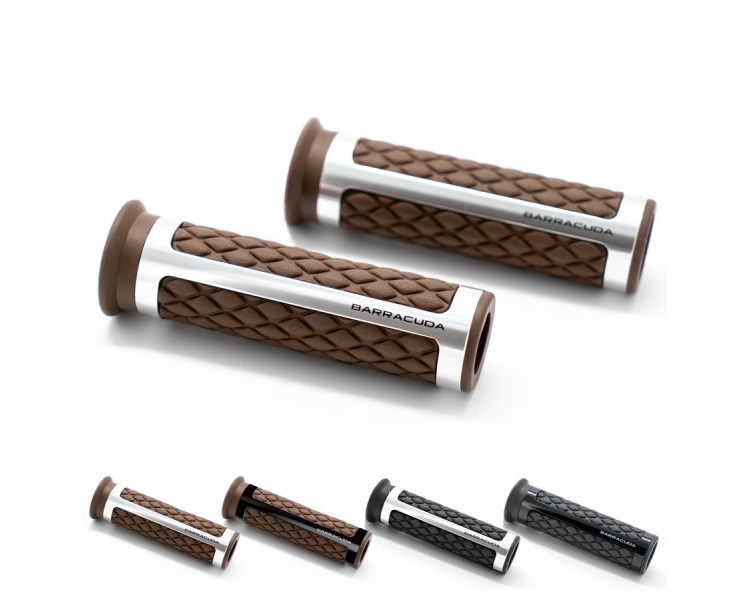 CLASSIC GRIPS Sind aus Gummi mit Aluminium eloxiert Einsätze mit Einer Speziellen Entwurf von BARRACUDA gemacht. Die Griffe Sind 120 mm lang. Sie sind in :. Schwarz und braun