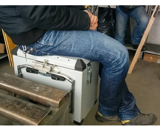The new Defender series of luggage from BUMOT is designed to be the best available to the adventure touring rider. BUMOT luggage is handcrafted in Bulgaria and has quickly become one of the most talked about names in ADV luggage systems. Starting with 2mm aluminum, BUMOT's unique assembly process employs a technique used in the sports car and airline industry to double the bottom edges of the box from 2mm to 4mm. This give the panniers added strength in the most vulnerable bottom edges, as this area takes the brunt of an impact in the event of a drop or fall. The cases are powder coated inside and out in your choice of silver, gray, or black, and are finished with stainless steel latches with keyed locks (included), zinc passivated friction hinges, and heavy duty weather stripping for waterproofness. Additional features of the new Defender system include: