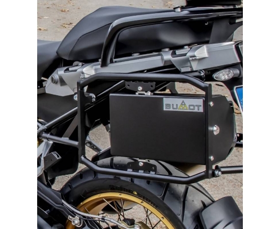 The new DEFENDER EVO BUMOT system includes the pannier rack, Left and Right pannier, pre-installed pannier mounts, pre-installed locks, and all hardware required to mount to the bike.