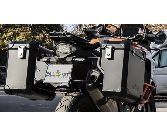 The DEFENDER EVO BUMOT system includes the pannier rack, Left and Right pannier, pre-installed pannier mounts, pre-installed locks, and all hardware required to mount to the bike.