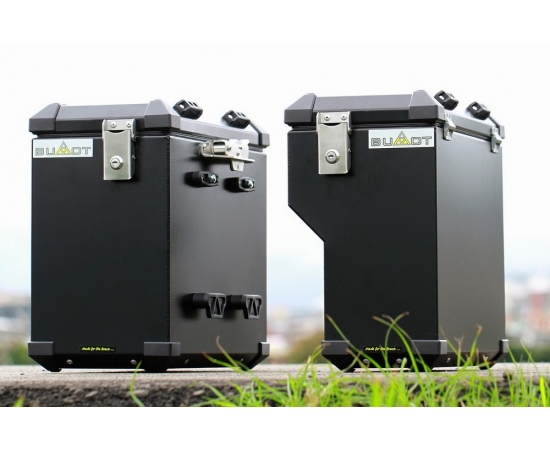 The new Defender series of luggage from BUMOT is designed to be the best available to the adventure touring rider. BUMOT luggage is handcrafted in Bulgaria and has quickly become one of the most talked about names in ADV luggage systems. Starting with 2mm aluminum, BUMOT's unique assembly process employs a technique used in the sports car and airline industry to double the bottom edges of the box from 2mm to 4mm. This give the panniers added strength in the most vulnerable bottom edges, as this area takes the brunt of an impact in the event of a drop or fall. The cases are powder coated inside and out in your choice of silver, gray, or black, and are finished with stainless steel latches with keyed locks (included), zinc passivated friction hinges, and heavy duty weather stripping for waterproofness.