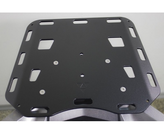 BUMOT Luggage Rack for the CRF1000L Africa Twin is constructed from a single piece of laser cut 4mm aluminum. The cutouts are shaped to accommodate a wide variety of straps and hooks to secure whatever luggage or larger items you need to carry. Each cutout and all edges are machined to eliminate wear on straps even on longer rides. The rack is pre-drilled for Rotopax mounts so you can easily carry fuel and water packs. Installation is quick and easy with the included hardware. Available in a black powdercoat finish.