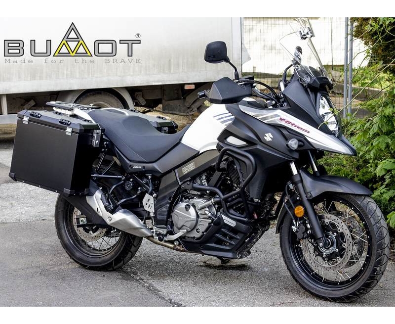 The new Defender series of luggage from BUMOT is designed to be the best available to the adventure touring rider. BUMOT luggage is handcrafted in Bulgaria and has quickly become one of the most talked about names in ADV luggage systems. Starting with 2mm aluminum, BUMOT's unique assembly process employs a technique used in the sports car and airline industry to double the bottom edges of the box from 2mm to 4mm. This give the panniers added strength in the most vulnerable bottom edges, as this area takes the brunt of an impact in the event of a drop or fall. The cases are powder coated inside and out in your choice of silver, gray, or black, and are finished with stainless steel latches with keyed locks (included), zinc passivated friction hinges, and heavy duty weather stripping for waterproofness.