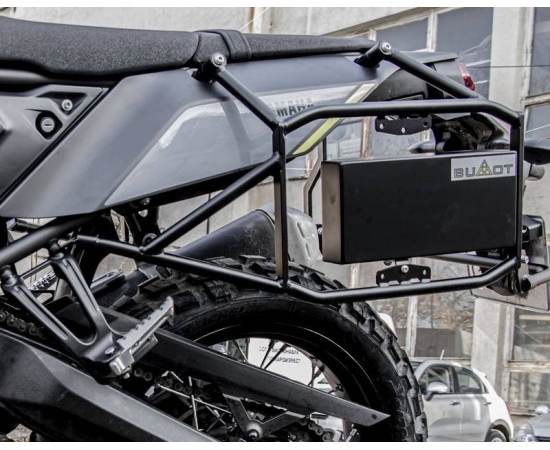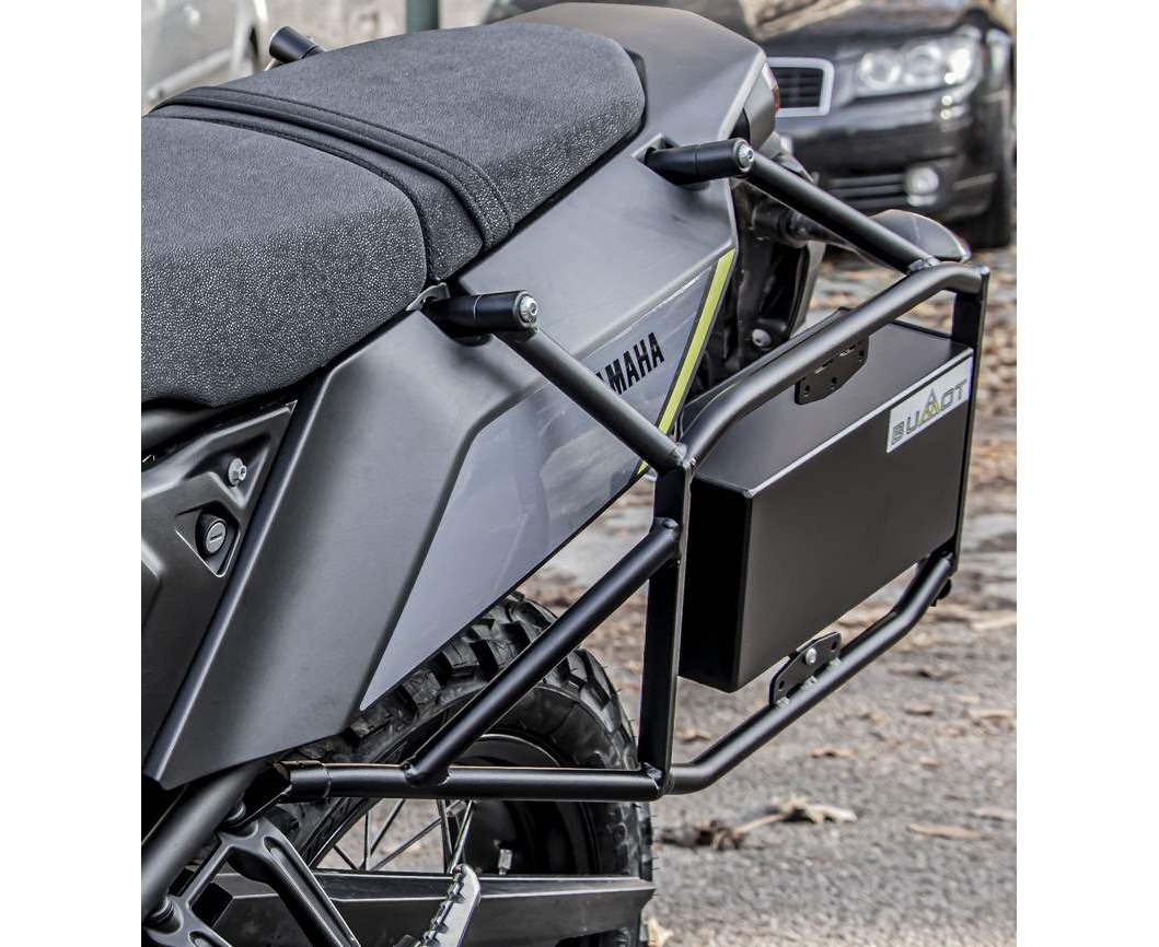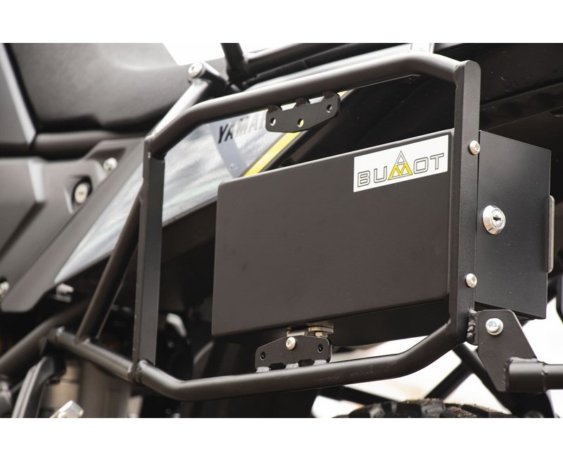 The BUMOT toolbox for the Tenere 700 adds approximately 3 L of lockable, dustproof storage to your BUMOT pannier rack.