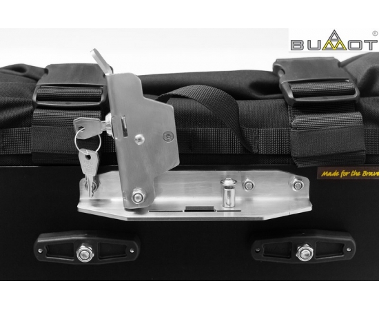 The Xtremada soft panniers attach to BMW GSA racks (required and sold separately) using BUMOT's innovative stainless-steel, exterior mounted Quick-release mechanism. This is the same QR design that has received rave reviews on the Defender aluminum panniers, and the key locks allow you to lock the bags to the rack directly. The rear-mounted quick release lever allows you to remove or install the bag within seconds, and no adapter plates, brackets, or other hardware are required for install. Xtremada QR locks can be keyed to match your existing Defender pannier locks, allowing for one key to open any case on your bike, regardless of whether you have aluminum or soft luggage installed. BUMOT's optional rack-mounted toolbox is fully compatible with the Xtremada soft luggage, and can provide an additional about 3L of lockable storage. The Xtremadas are designed symmetrical from the center line of the bike and visually balanced when mounted.