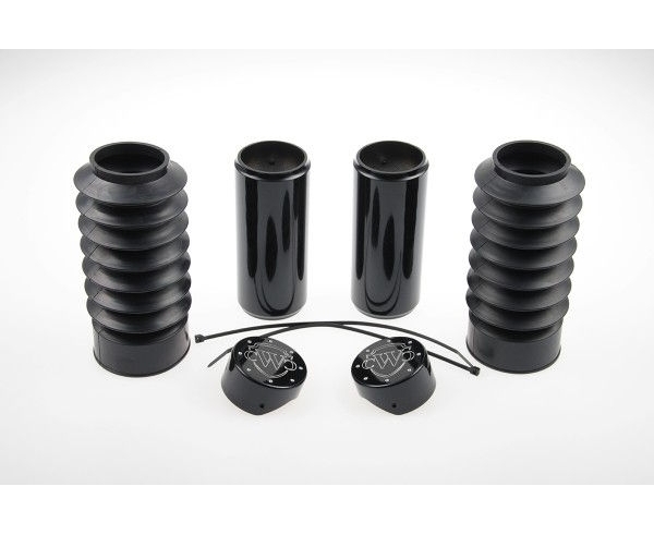 - Kit mit Faltenbälge (2x Gabelkappen mit CWC-Logo eingefräst, 2x Obere Gabel Cover & 2x 49mm Faltenbälge)