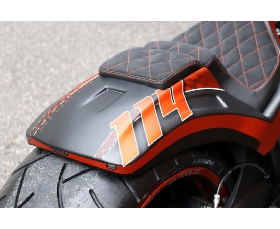 Kompletter Heckumbau "Racing" in der 1-Sitzer oder 2-Sitzer-Variante inkl. ABS-Heckfender, Montagematerial, Innenfender aus Metall und Echtledersitz für Harley-Davidson ® FXDR Modelle ab dem Baujahr 2019!