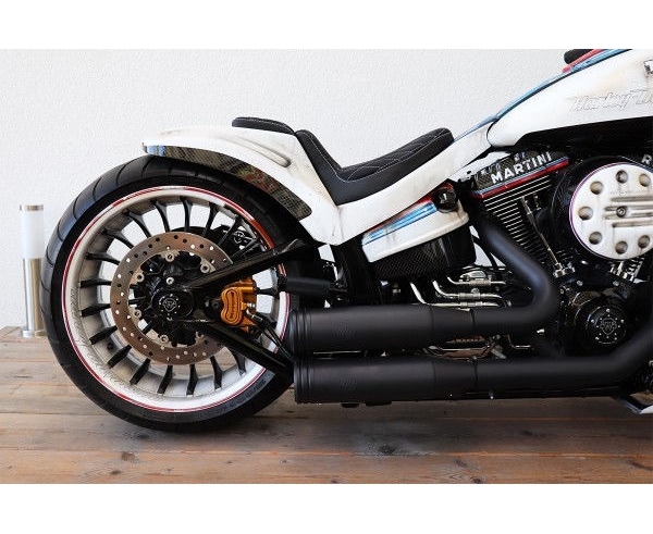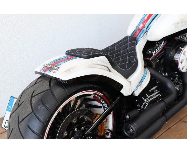 Kompletter Heckumbau "Racing" in der 1-Sitzer oder 2-Sitzer-Variante inkl. ABS-Heckfender, Montagematerial, Innenfender aus Metall und Echtledersitz für Harley-Davidson ® Breakout Modelle ab dem Baujahr 2013 bis zum Baujahr 2017!