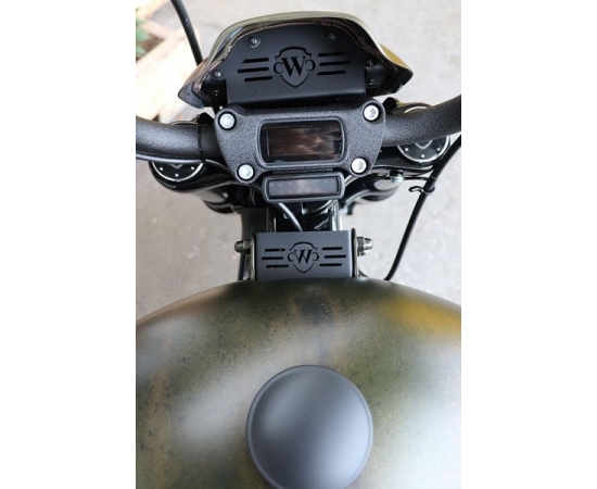Der Cult-Werk ® Tanklift hebt den Tank am vorderen Befestigungspunkt an und passt bei der Harley-Davidson ® Street Bob ab dem Baujahr 2018. So können Sie die Höhe des Tanks nach Ihrem eigenen Geschmack einstellen (ca. zwischen 40 & 50mm). Durch die Erhöhung des Tanks kommt die Form des Tanks noch besser zur Geltung! Ein zusätzlicher Vorteil dieses Tanklifts ist, dass zwischen Rahmen und Tank genügend Platz entsteht um den Kabelbaum unter dem Tank verschwinden zu lassen. Es muss dazu nichts an den Kabeln verändert werden! Weiters wurde der Cult-Werk Tanklift optisch sehr schön und aufwendig gestaltet. Die Design passt perfekt zur Optik der anderen Cult-Werk ® Custom Parts und gliedert sich somit perfekt ein! CNC-gelasert und anschließend schwarz pulverbeschichtet.