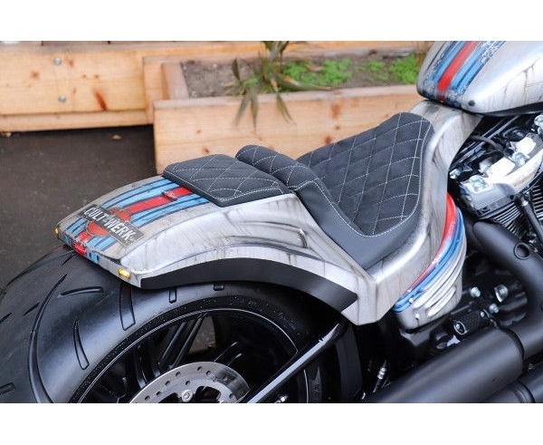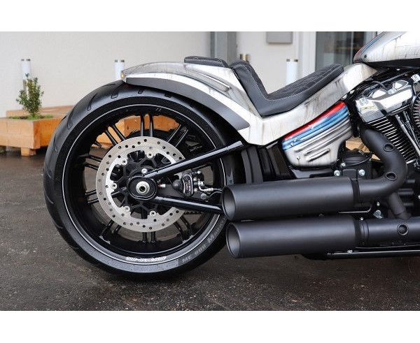 Kompletter Heckumbau "Racing" in der 2-Sitzer-Variante inkl. ABS-Heckfender, Montagematerial, Innenfender aus Metall und Echtledersitz für Harley-Davidson ® Breakout Modelle ab dem Baujahr 2018!
