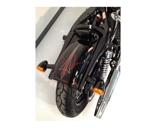 Optisch gestaltet wie der originale Heckfender allerdings maximal gekürzt so dass der Rahmen nicht gekürzt werden muss. Passend auch für 180er Hinterreifen ohne Änderungen! Die originalen Fender Struts werden weiterverwendet, ebenso der Spritzschutz. 100% passgenaues ABS Kunststoffteil - KEIN GFK!