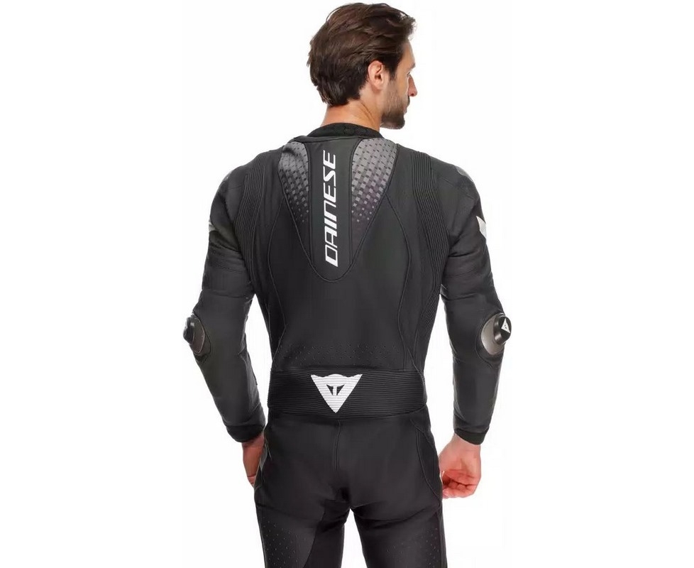 Conceived for all those motorcycle riders who challenge the limits of speed and love to test themselves on the track, the Laguna Seca 6 suit is designed to guarantee maximum freedom of movement in the saddle, withergonomic levels featuring optimal performance. Its exclusive construction integrates wide stretch inserts both in leather – such as the Dainese Tri-Axial system on the back guaranteeing perfect mobility and maximum resistance – and in stretch fabric, such as the wide front panel that follows the rider’s body shape, maximizing comfort.