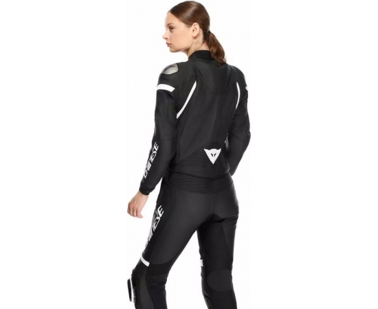 This women’s two-piece suit is designed to perfectly adapt to the female body shapeowing to the combination of fine Tutu cowhide, which guarantees resistance, elasticity and integrated breathability, and wide inserts in S1 bi-elastic fabric along the entire length of the suit.