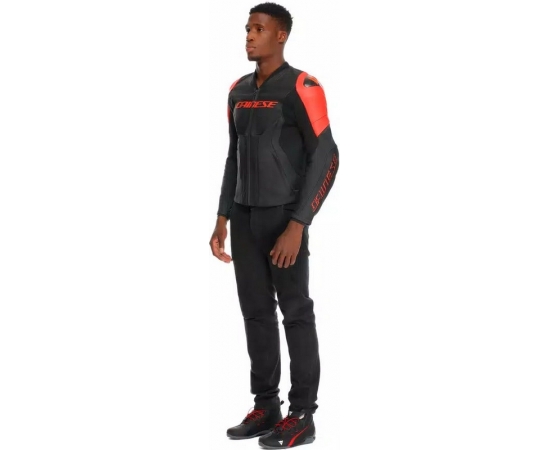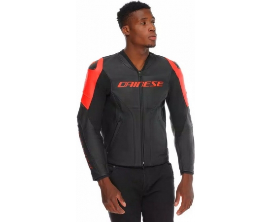 Dainese RACING 5 PERF LEATHER JACKET, BLACK/BLACK/RED-FLUO | 2015300032-P75