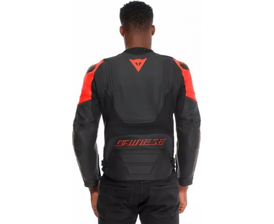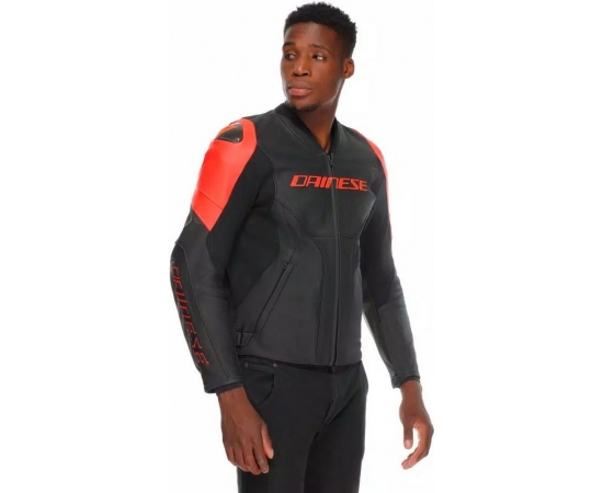Dainese RACING 5 PERF LEATHER JACKET, BLACK/BLACK/RED-FLUO | 2015300032-P75
