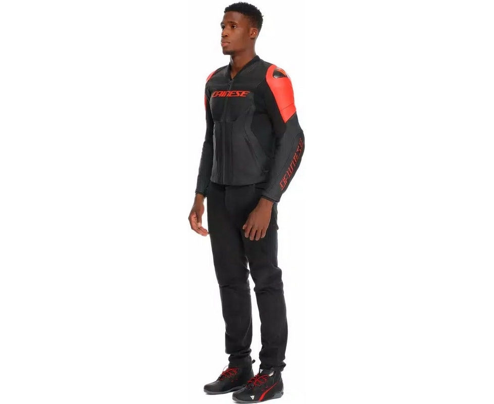 Dainese RACING 5 PERF LEATHER JACKET, BLACK/BLACK/RED-FLUO | 2015300032-P75