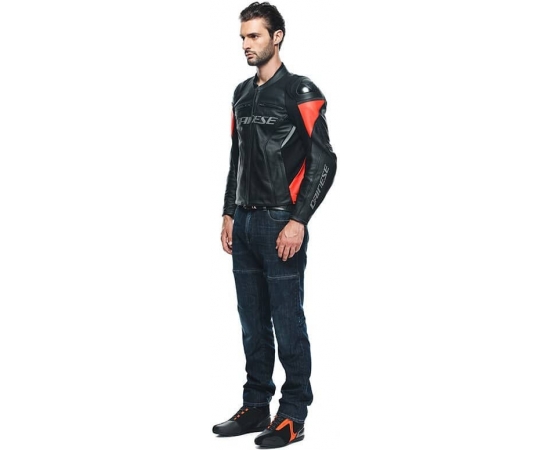 Dainese RACING 4 LEATHER JACKET, BLACK/FLUO-RED | 201533848628008