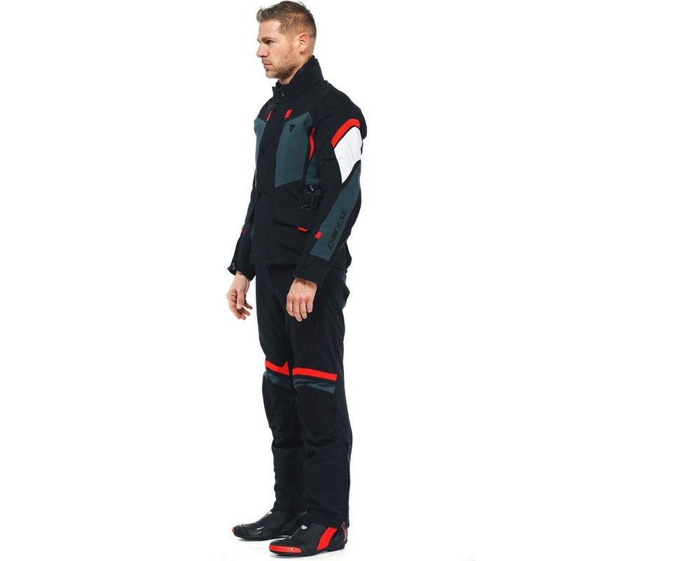 Carve Master 3 GORE-TEX® is the most advanced motorcycle sport touring jacket in the Dainese range and ensures comfort and maximum performance all year round. The GORE-TEX® waterproof membrane serves as a shield against rain and atmospheric agents, while always guaranteeing excellent breathability. The construction in soft, resistant Mugello fabric adapts perfectly to the body, faithfully tracing its movement in the saddle. The removable thermal lining boosts comfort even when traveling in winter and allows for great versatility of use, in combination with the numerous zipper-operated air vents. The highest Dainese safety standards are upheld with Pro-Armor Lev. 2, Type B protectors on the elbows and shoulders and the possibility to insert a G1 or G2 back protector and Pro-Armor chest protectors. Dainese Pro-Armor technology, inspired by the geometries of natural fractals, allows for maximum protection, with the mobility of a soft protector and ideal ventilation due to a surface that is perforated across 40% of its area.