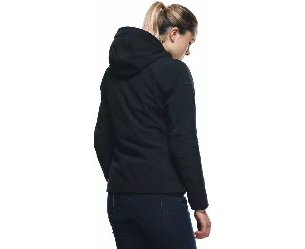 The Centrale WMN jacket features a detachable padded collar and a hood that can be rolled up when riding using the reflective back band. The hood has an internal metal core that allows to tighten it around the face, creating a peak that protects against atmospheric agents (Uno Touch™ Hood Peak technology) – with just one hand. Once off the motorcycle, the waterproof and lined lower pocket will keep your hands nice and warm.