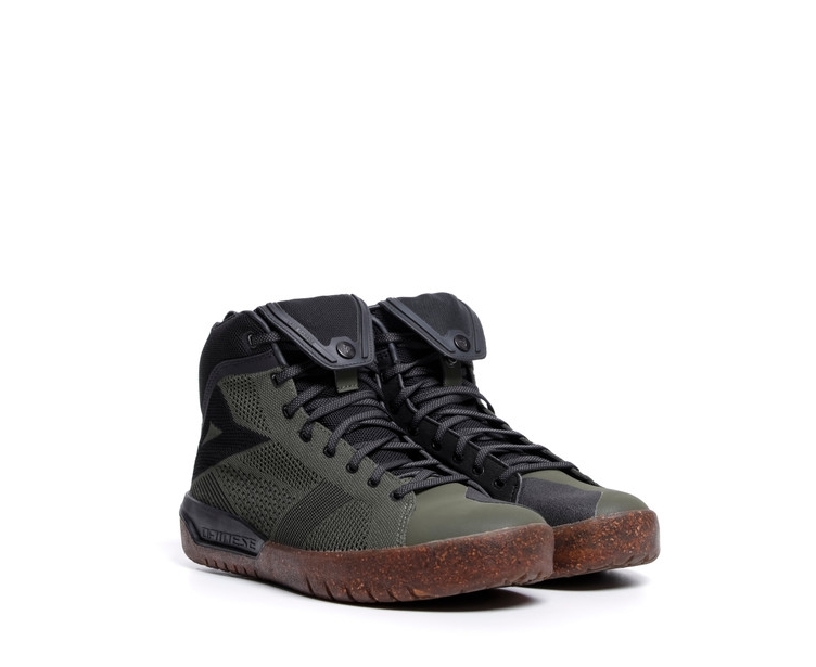 Protective motorcycle shoes inspired by the street world, light and ventilated, both when riding and when walking. Equipped with Groundtrax® soles with an asymmetrical design for maximum stability and grip.