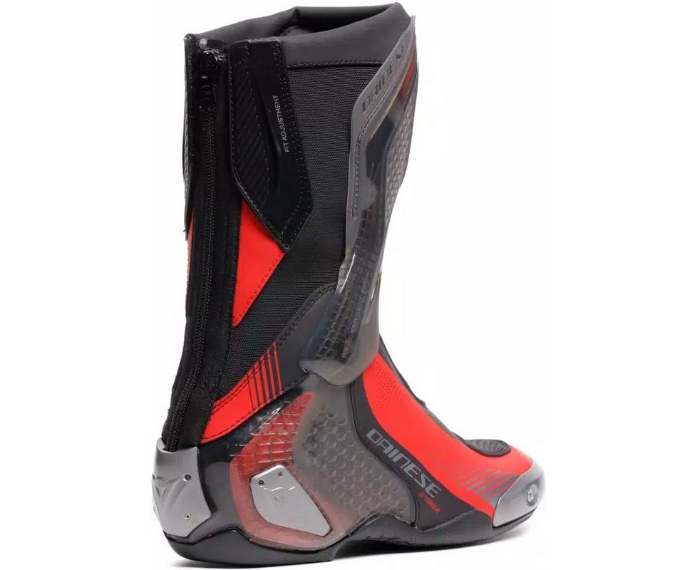 Made ofmicrofiber and D-Stone™ fabric with high-grip TPU D-Axial system, these racing boots, inspired by the top-of-the-range Dainese Axial 2, guarantee maximum comfort and high standards of protection while maintaining a sporty and attractive design, enhanced by the integration oftranslucent plastic inserts giving a glimpse of the underlying shock absorbers.