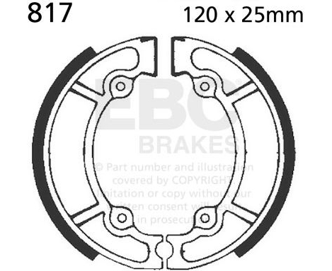 EBC Brakes plain motorcycle replacement brake shoes are an OE quality replacement brake shoe made with boned brake linings and using high pressure die cast aluminium platforms for two wheeled machines. Shoes are edge trimmed and radius ground exactly into the brake drum. They have chamfers on the ends of the lining and come complete with OE style brake shoe springs.